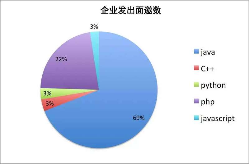 从企业发给候选人的总面邀占比以及程序员最终入职占比可以看出,java仍是市场上最供不应求的岗位,PHP紧随其后,C++获得的面邀数和offer数没有任何优势。