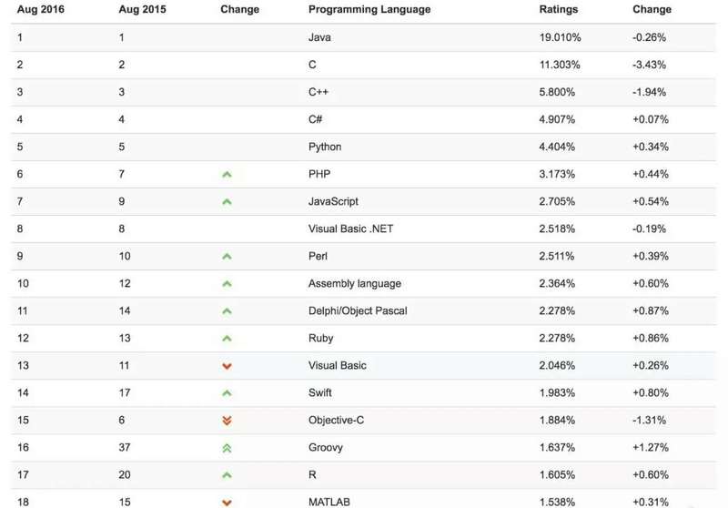 让我们先来看一组TIOBE的最新数据。